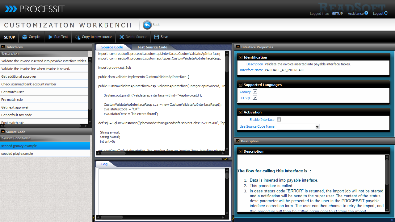 The Customization APIs are available in key workflow positions to write custom code to interface with the workflow procedures.