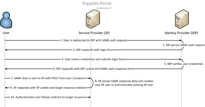 Supplier Portal supports two primary SAML 2.0 SSO scenarios with HTTP Redirect-POST binding. Authentication requests from the SP are sent to the IdP as either an HTTP redirect, or as an HTTP Post. Responses or requests from the IdP to the SP are expected to be sent as HTTP Post.