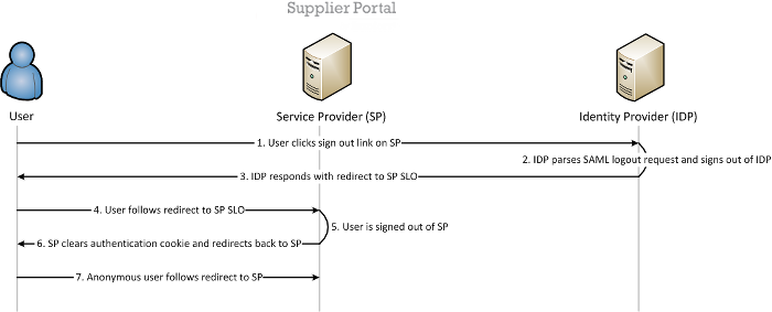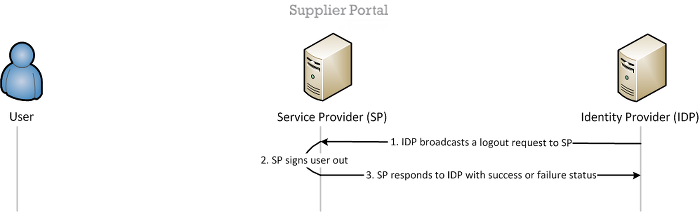 If the IdP and all the SPs in the federated SSO session are configured correctly and the user signs out of any other application in the federated SSO session, Supplier Portal receives a sign-out request from the IdP and signs the user out of the portal.