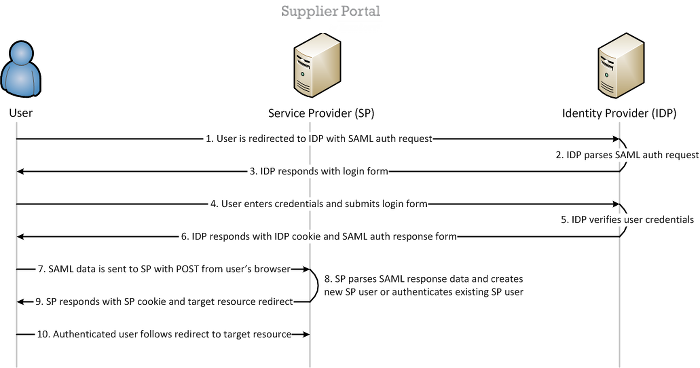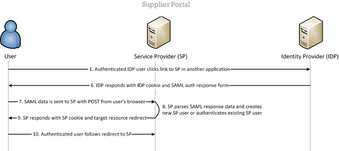 Supplier Portal supports two primary SAML 2.0 SSO scenarios with HTTP Redirect-POST binding. Authentication requests from the SP are sent to the IdP as either an HTTP redirect, or as an HTTP Post. Responses or requests from the IdP to the SP are expected to be sent as HTTP Post.