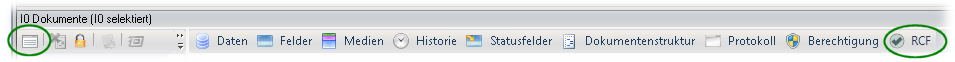 Die RCF-Darstellung besteht aus zwei Bereichen: Links werden die Lese-