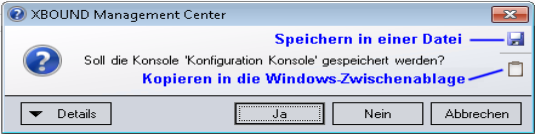 Falls ein Fehler aufgetreten ist, den Sie nicht beheben können, wenden Sie sich an den Kofax-Support und senden Sie alle Fehlermeldungen und verfügbaren Fehlerinformationen mit. Alle XBOUND-Dialoge enthalten Schaltflächen zum Speichern der Meldungen in einer Datei und zum Kopieren der Meldungen in die Windows-Zwischenablage.