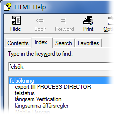 Ofta kan du själv enkelt åtgärda fel och problem. Anvisningar och information finns i den här hjälpfilen. Om du vill visa en lista med hjälpavsnitt som kan vara till nytta vid felsökningen klickar du på fliken . Skriv därefter felsökning i rutan: