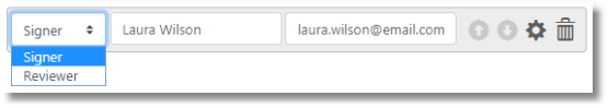 After adding a recipient select the role for the recipient. A recipient may act as signer or as reviewer.