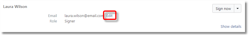 Changing the email address of a recipient is available by clicking Edit link for a required recipient.