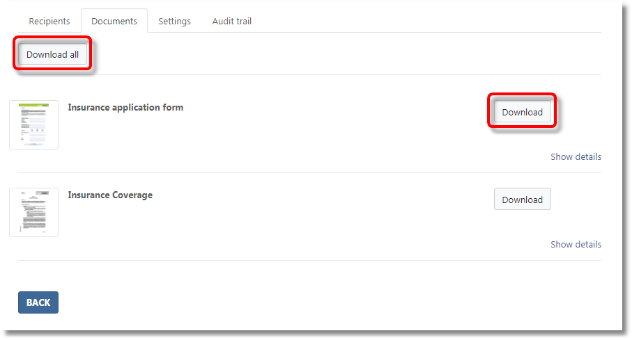 In Supplemental Documents section it is allowed to download supplemental documents, which were uploaded by a recipient.