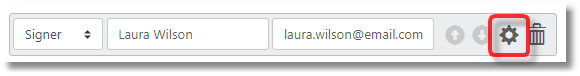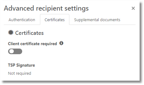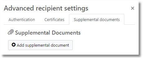 Clicking the gear will open the advanced recipient settings for authentication, certificates and supplemental documents.