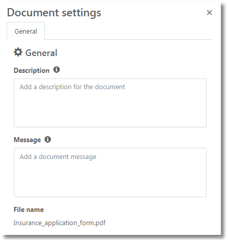 Clicking the gear will open the advanced recipient settings. For each document a description and a message can be added.