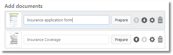 All uploaded documents are listed in the order they were uploaded. The documents can be reordered using the up/down buttons.