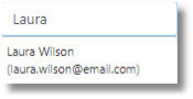 Typing text into the field creates a drop down populated with contact(s) that match entered text. Selecting the contact from the drop down can be done by clicking the corresponding entry.
