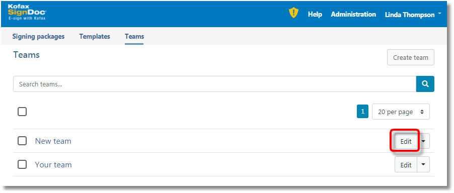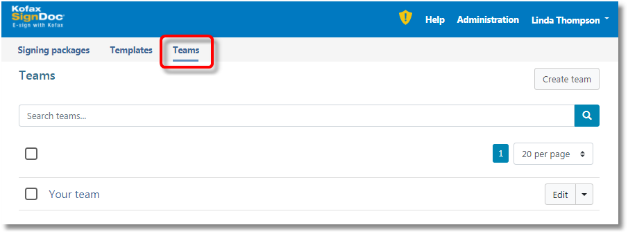 Add a SignDoc Standard user as team manager.