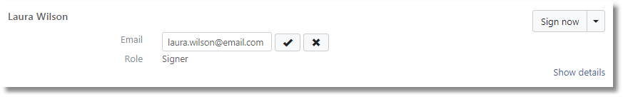In the Recipients tab a user can start the Sign now process, see In-person signing session chapter for a detailed description.
