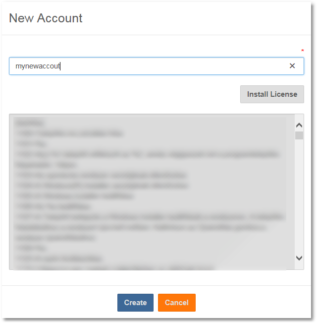 Note When a global license is used no additional license is required when creating an account and the Install License button is not available.