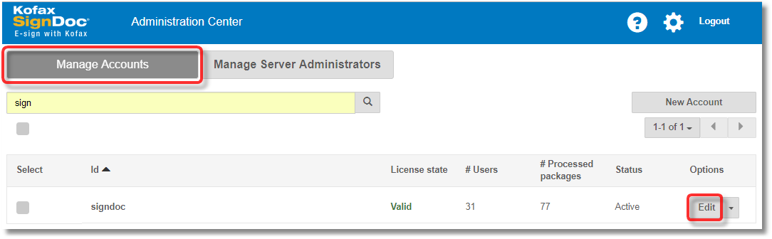 The Manage Account menu appears, where you can click Settings to edit the account settings.