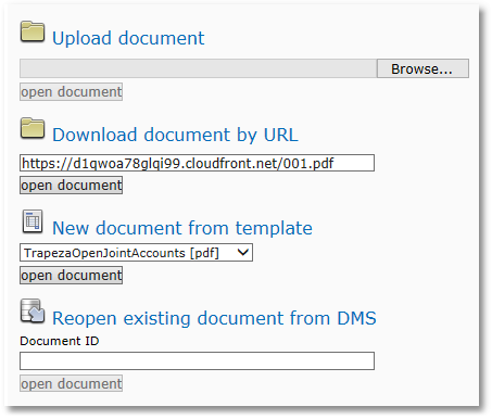 Reopen existing document from DMS option it is possible to reopen a document, that is stored in the internal document management system (DMS).