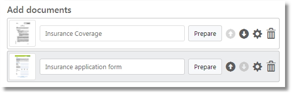 All uploaded documents are listed in the order they were uploaded. The documents can be reordered using the up/down buttons.
