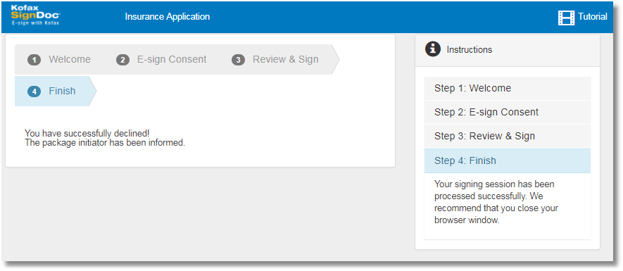The recipient will see a message that the signing has been declined and the package initiator has been informed.