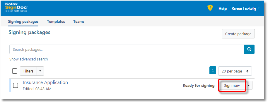 •Common button Sign now to start new signing session for multiple signers. In-person signing session can be started for multiple recipients, which have not finished the signing ceremony in a signing package prepared for signing.