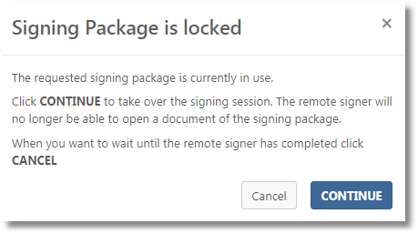 Note If the signing package is locked by another session, the following confirmation dialog will be displayed to unlock it.