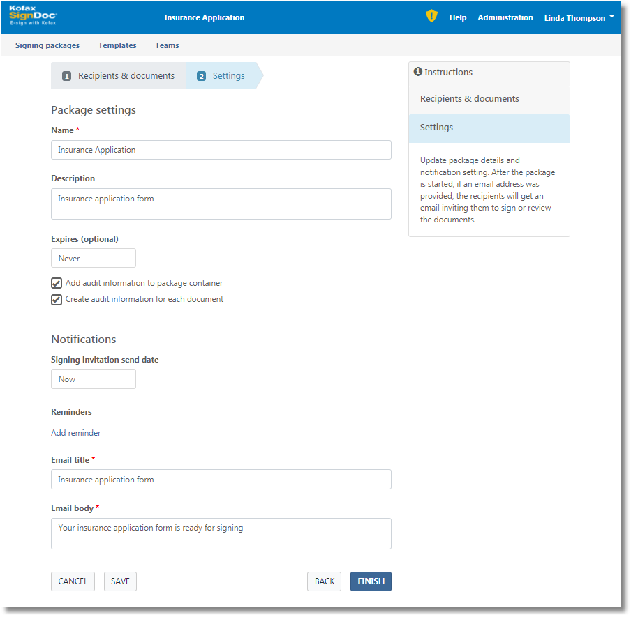 Email reminders are sent to recipients if they haven’t yet completed the package.