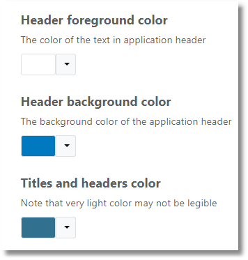 The option Header foreground color changes the color of the text in the application header.