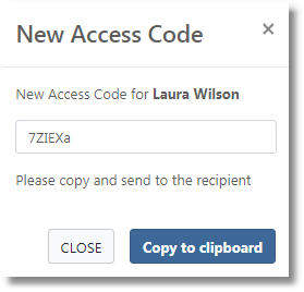 By clicking Generate new Access Code link, the dialog with new generated access code will be displayed: