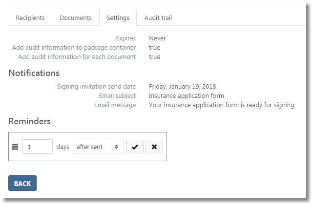 With Send email to all a user is able to resend an invitation to all recipients to start the signing session for a signing package.