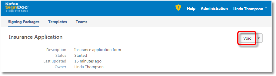 A user, which has access to a signing package, can cancel the package as long as it is not completed. It is possible to void a set of signing packages in Signing Packages view: