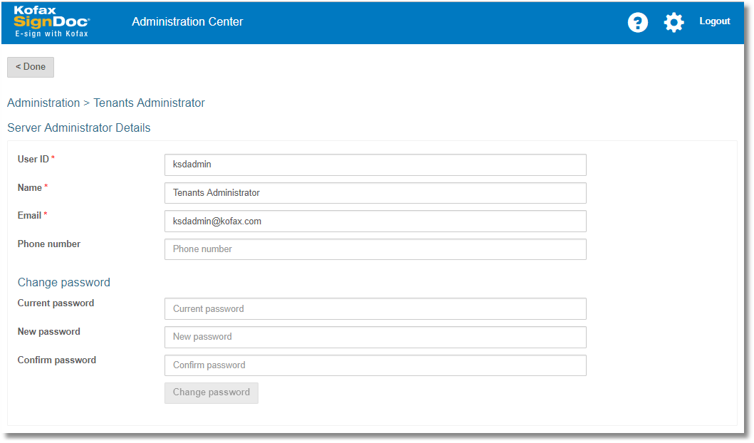 To edit the server administrator click the Edit button for the corresponding server administrator.