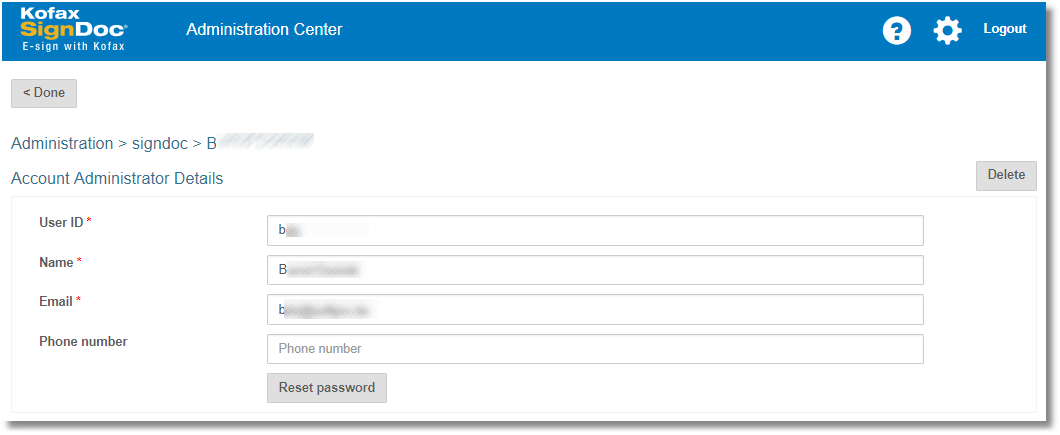To edit an account administrator click the Edit button for the corresponding account administrator.
