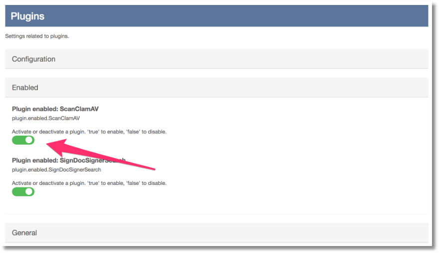 Slide the Plugin enabled: ScanClamAV setting to on: