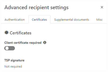When Client certificate required is not selected the installed certificate is used. See information about signing certificate in Signing settings.