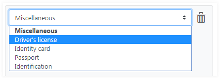 Choose a document type using dropdown at the top of the form. The list in the dropdown contains all document types even if they were defined for different languages. Note that you can select supplemental documents configured in administration. See Supplemental documents.