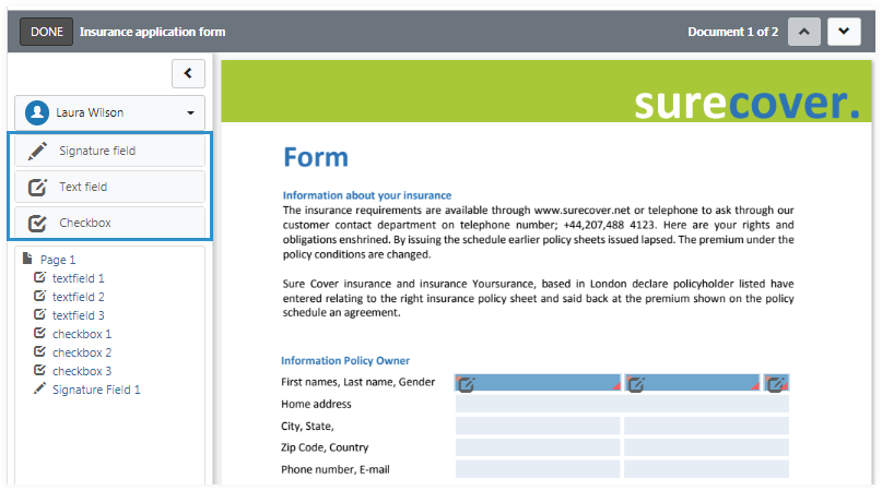 - Signature fields