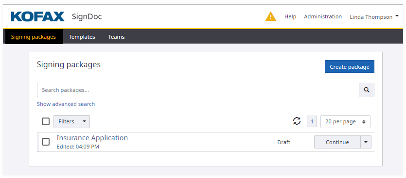 Create a signing package to send documents for recipients to sign. A SignDoc Standard signing package is a container used to send one or more documents for signing or reviewing. A signing package can have multiple multipage documents and several recipients with different roles.