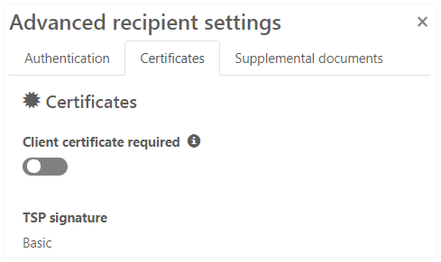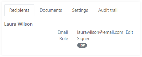 The TSP signature label in Certificates tab indicates if and what type of TSP signature the recipient is requested to sign a document with.