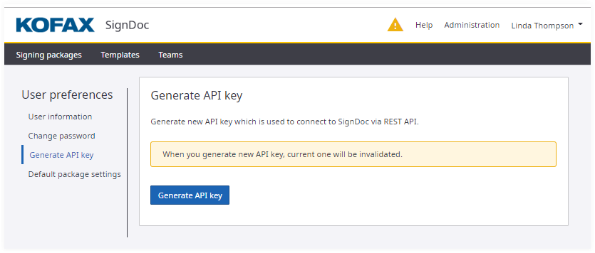 On this page a user can modify his personal details as full name or email. The time zone used for all timestamps during signing and for any time and date indications can be selected from a drop-down box.
