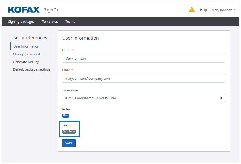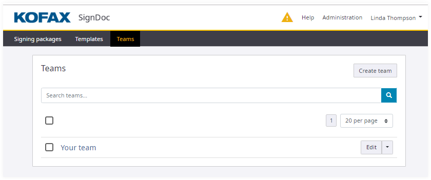 SignDoc Standard enables account administrators to create teams and to assign users as team manager.