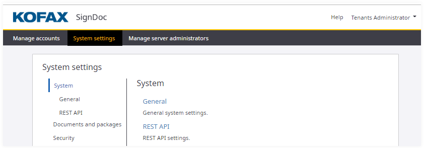 From the Administration Center starting page click the System settings link in the navigation panel.
