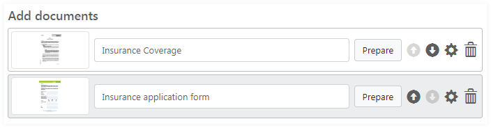 All uploaded documents are listed in the order they were uploaded. The documents can be reordered using the up or down icons .