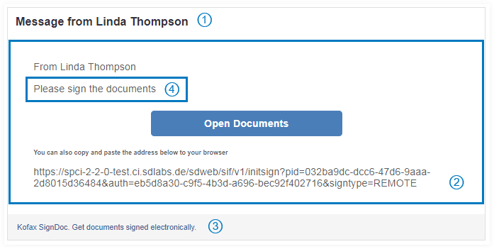 The signer notification is a more special case, since the package creator can define mail text as part of the signing package parameters. The signer notification mail body acts as a frame for the package notification text.