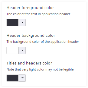 The option Header foreground color changes the color of the text in the application header.