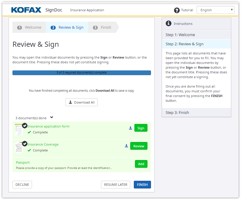You can optionally download copies of your documents. The signing process is complete once you click