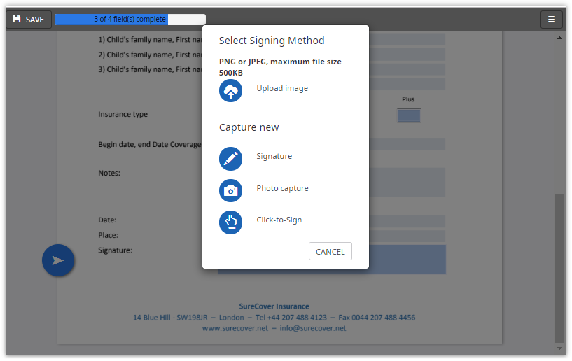 Tap or hover on the signature field.