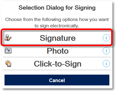 This signature can be provided by utilizing a signature pad, an inbuilt digitizer of your TabletPC, smartphone, iPad or via the Sign2Phone App: