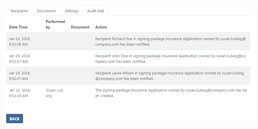 With Send email to all, a user can resend an invitation to all recipients to start the signing session for a signing package.