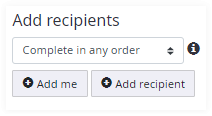 Click Add recipient to add a recipient to the signing package. To add yourself as recipient to the signing package, click Add me.