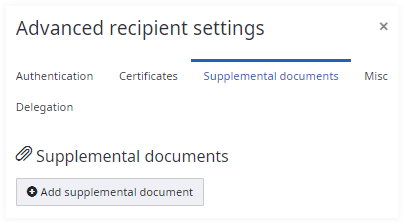 recipient settings for authentication, certificates, supplemental documents and miscellaneous settings.