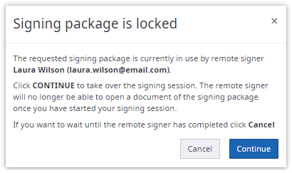 signing session can be started for multiple recipients who have not finished the signing process in a package prepared for signing.