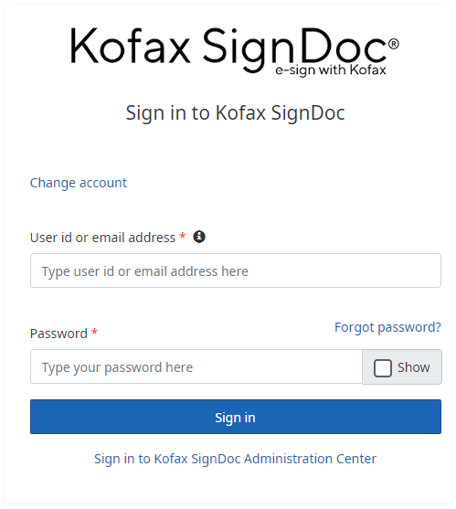 An account administrator invites users to SignDoc Standard. As a user, you receive an email with the request to provide a password. The email address and password are your credentials to log in.